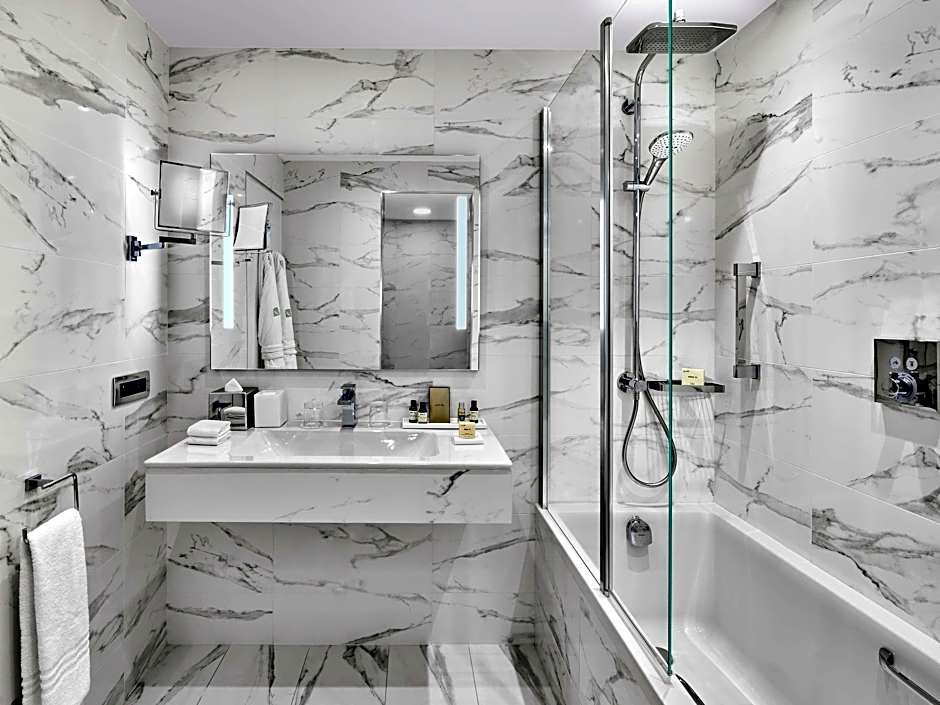 Når det gjelder avslapning og fritid, har [hotellet] alt du trenger med sine utrolige bassengmuligheter. Ta en forfriskende svømmetur i takbassenget kun for voksne, samtidig som du nyter den spektakulære utsikten over byen og det glitrende havet. For familier som reiser med barn finnes det også et sesongåpent takbasseng spesielt for barn, hvor de kan plaske og leke så mye de vil. Enten du vil sole deg eller kjøle deg ned etter en dag med oppdagelser, er disse bassengene perfekte steder å slappe av og skape varige minner.
